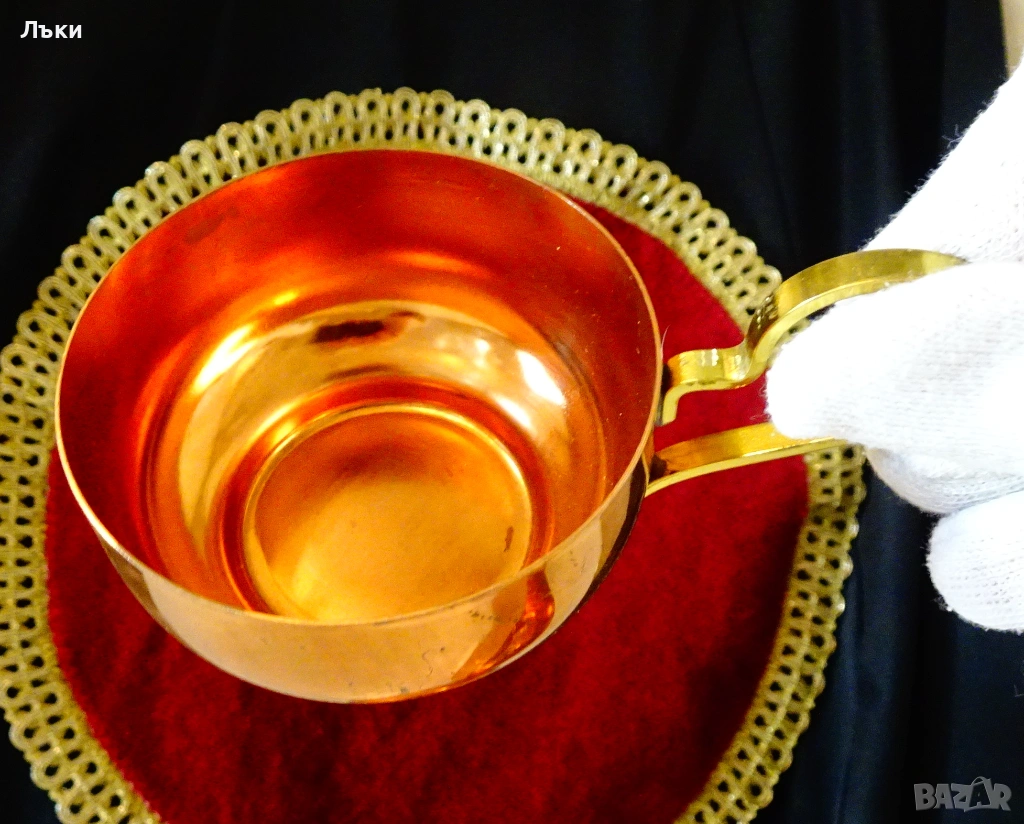 мед.Имат яки бронзови дръжки с дебела позлата.Височина с дръжката 6