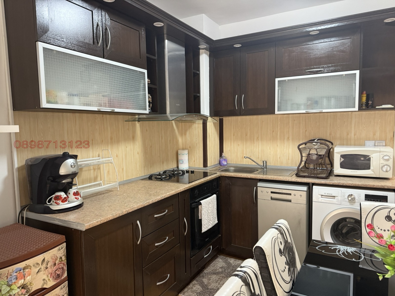 Апартаментът е отремонтиран, обзаведен с нови мебели и оборудван с всички необходими електрически уреди за нуждите на едно домакинство.