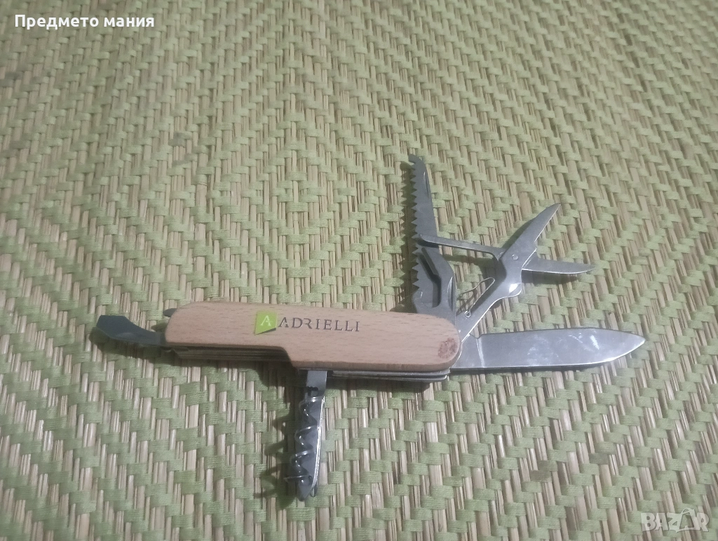 Инструменти: Основно острие, трион за дърво, ножица, отварачка за бутилки, тирбушон и шило.