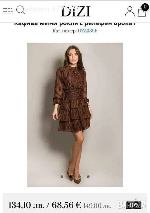 Роклята е купувана от сайт DIZI и е размер S, карамелено кафяв цвят.