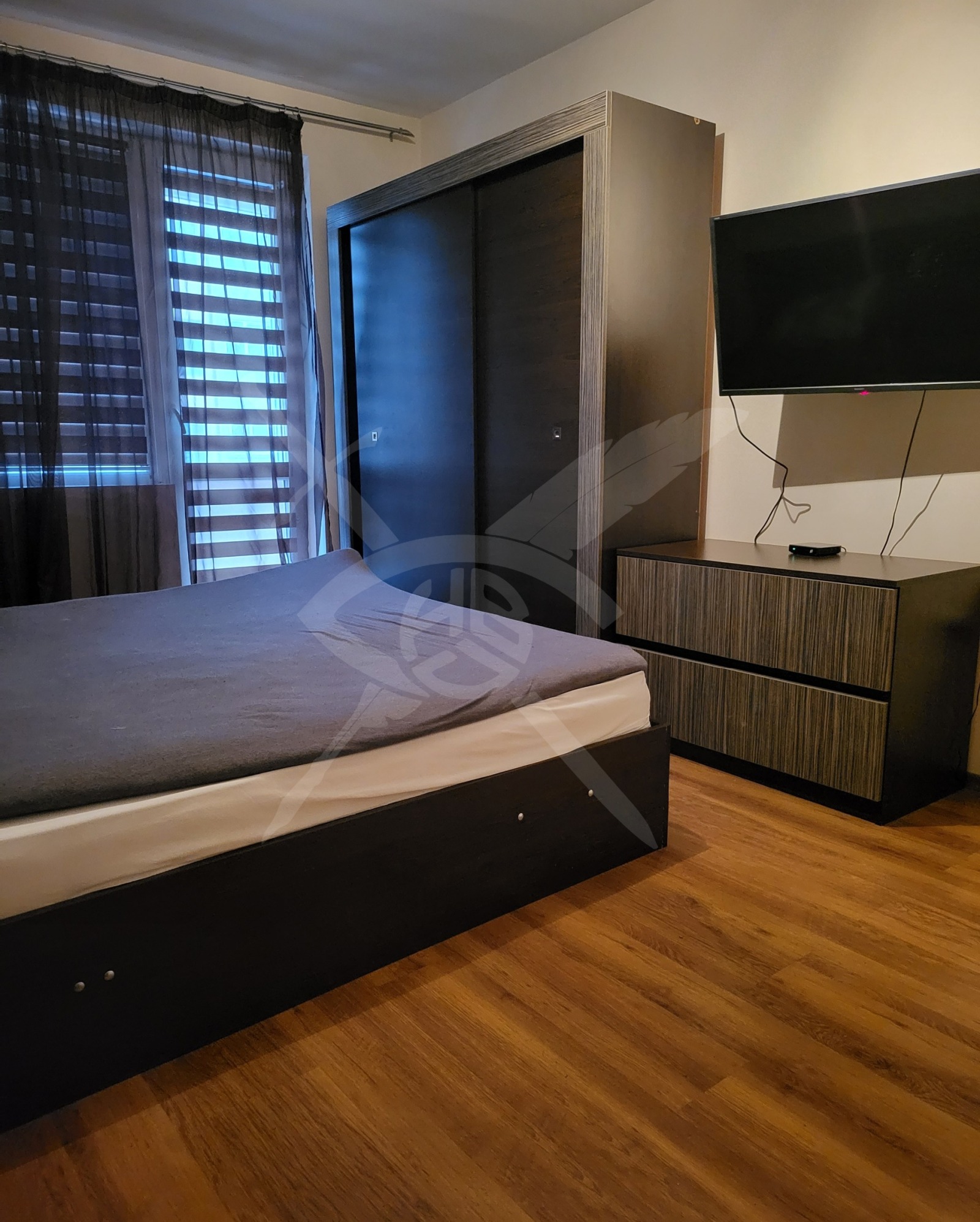 РАЗПРЕДЕЛЕНИЕ: Предлагаме за наем двустаен апартамент с обща площ 62 кв.м. функционално разпределени в спалня, хол с кухненски бокс, баня с тоалетна и тераса.