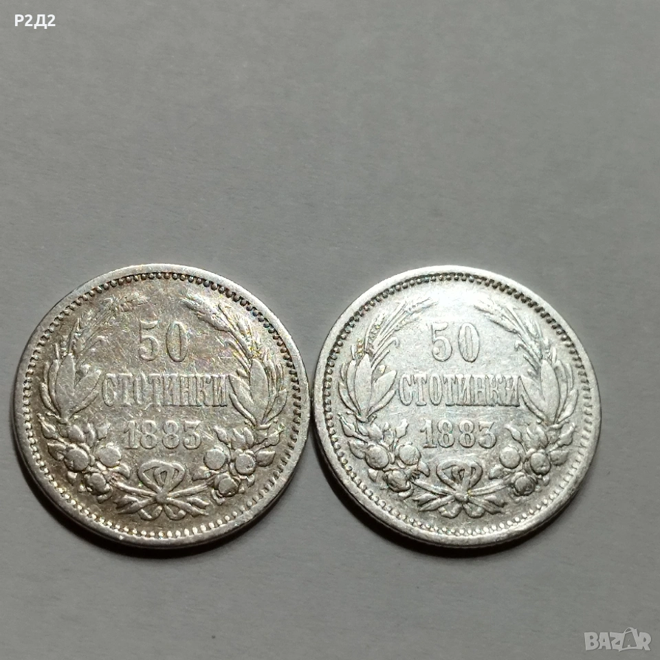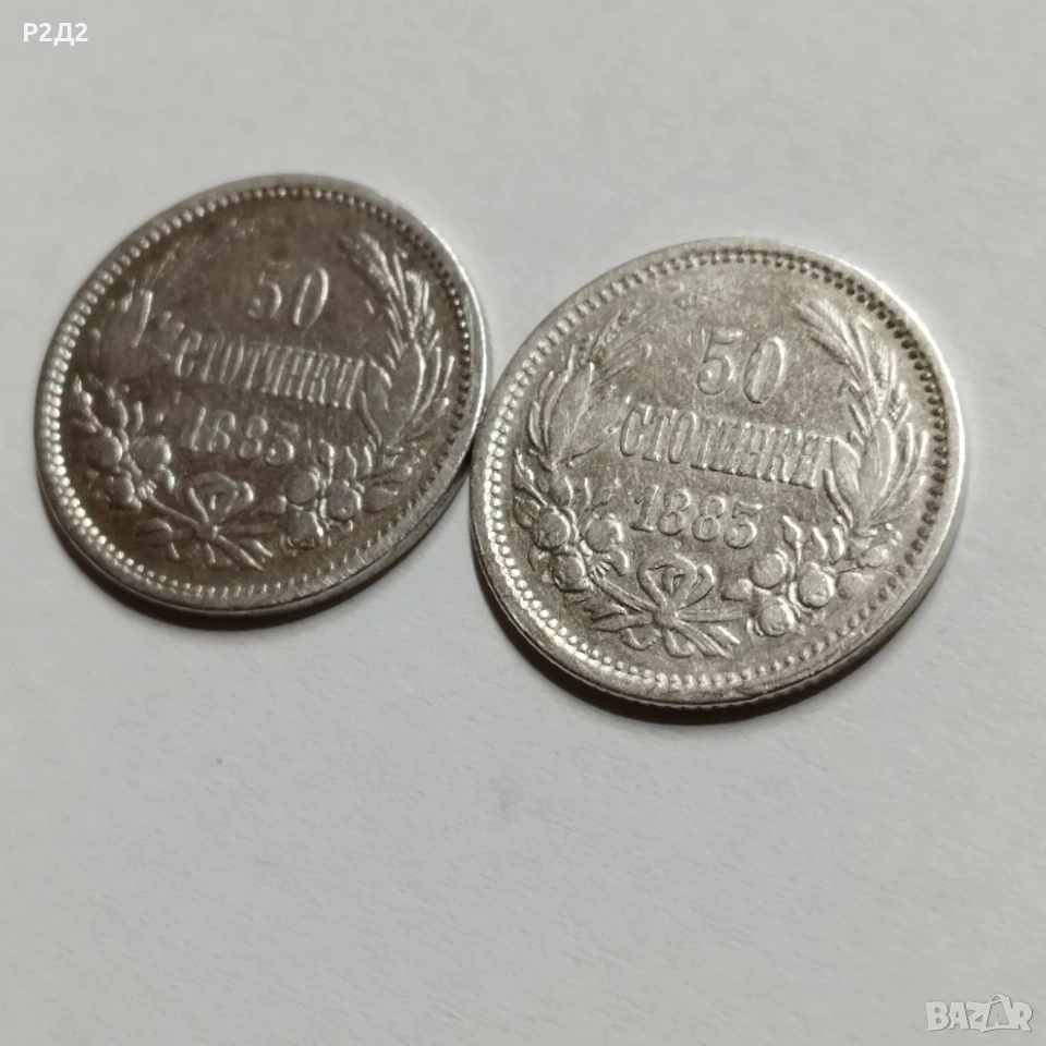 Две стари сребърни монети 50 стотинки от 1883 година. Цената е обща!