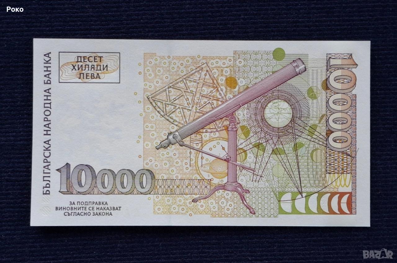 Непрегъвана Банкнота (UNC) 10,000лв 1997г.Номер АА0009171. → Обява 53952988