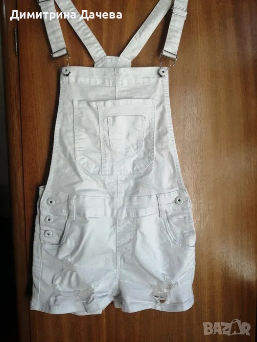 Детски гащеризон бял цвят, размер S, памучен материя, подходящ за ежедневна употреба.