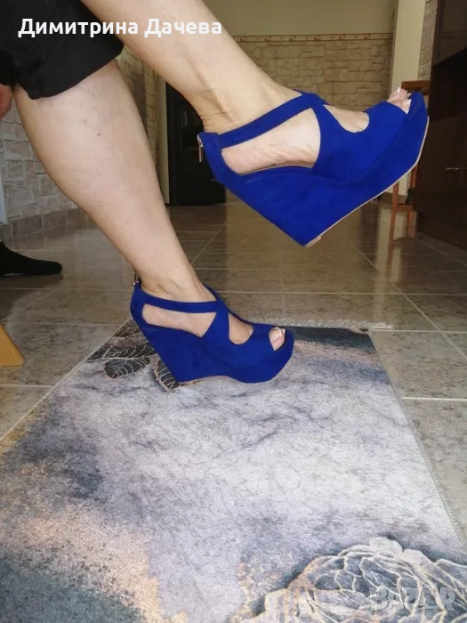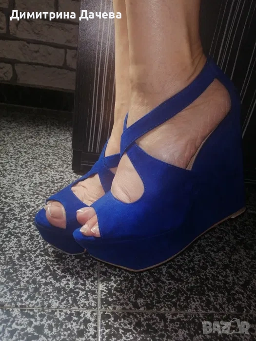 Дамски елегантни обувки на платформи в цвят турско синьо. Подходящи за всякакви събития.