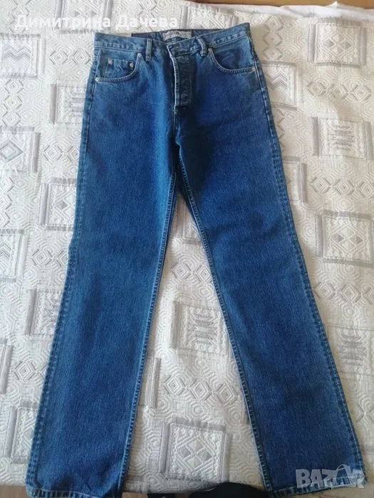 Мъжки дънки в син цвят с размери: W31 L34. Дънките са с дълбоко дъно и стабилно закопчаване.