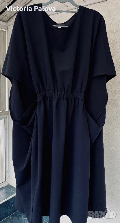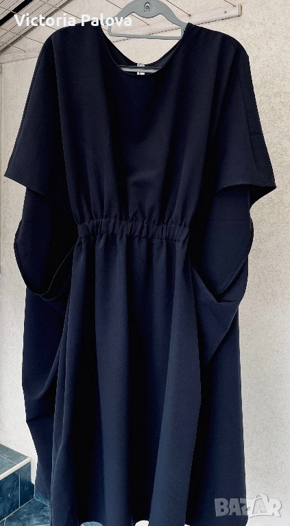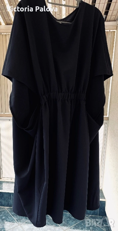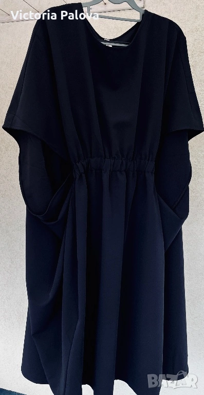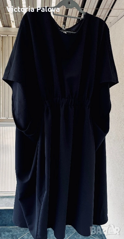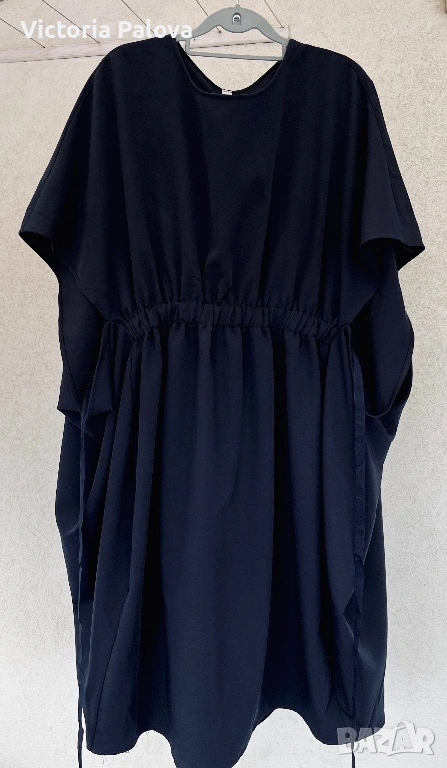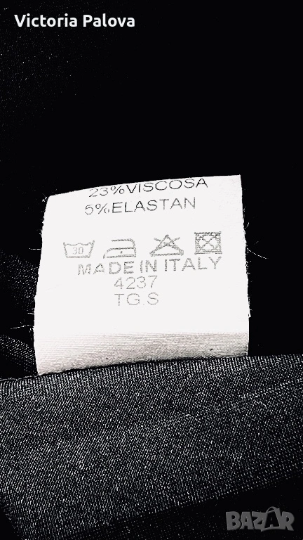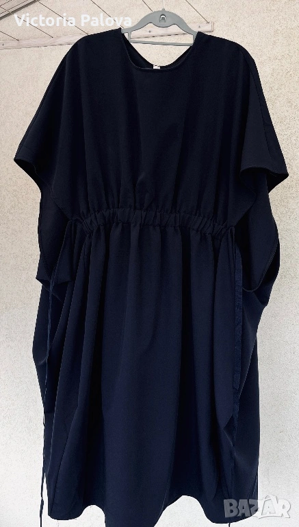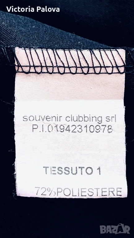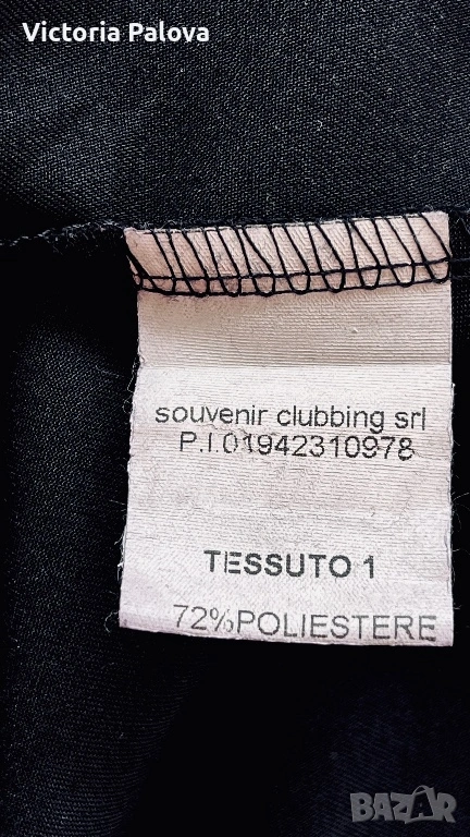 Souvenir Italy е бранд, превърнал се в еталон за съвременната италианска креативност и смелост в дизайна, като всяка тяхна дреха носи усещането за висша мода и артистична свобода. Тази конкретна находка представлява изключително специфична и визуално въздействаща част от техния каталог, притежаваща авангарден и подчертано „изчанчен“ стил. Моделът не е класическа рокля, а архитектурна концепция с огромен oversize обем, която напълно игнорира стандартните представи за размер. Въпреки че на етикета е посочен размер TG S, кройката е реално огромна и стои внушително благодарение на тежко падащата си материя. Конструкцията е напълно нестандартна – липсват конвенционални ръкави, като вместо тях са проектирани специфични отвори тип „дупки“, създаващи динамична игра на обеми и пластове при всяко движение. Висококачественият италиански бленд от 72% полиестер, 23% вискоза и 5% еластан гарантира, че моделът поддържа своята сложна форма, не се мачка лесно и притежава фин, дискретен блясък. Това е специфичен и много интересен дизайн, който не се поддава на стандартно измерване в сантиметри, тъй като е проектиран да владее пространството около тялото по един неподражаем, модерен и артистичен начин.