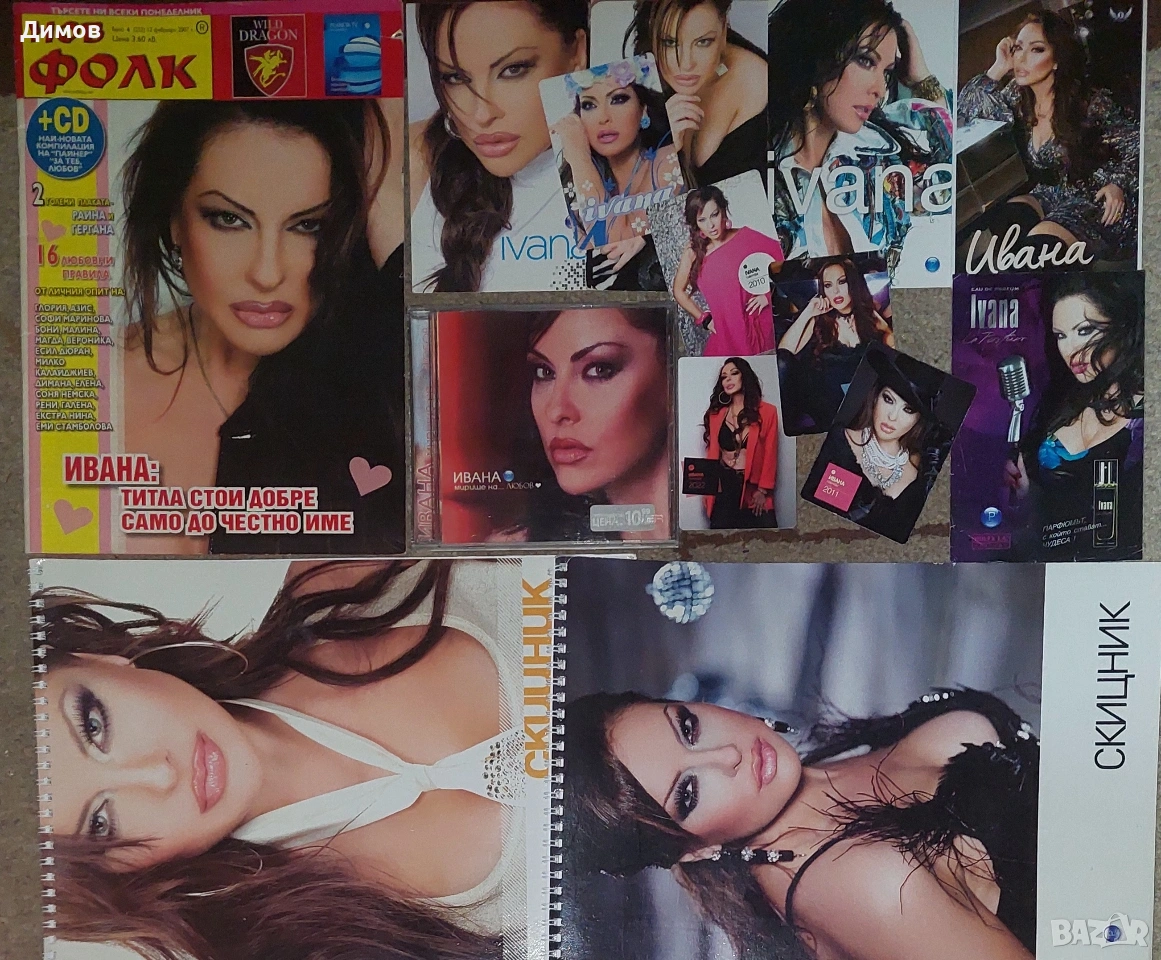 Стари картички, календарчета, скицници,компактдиск,списание с гост Ивана и публикации от пресата.