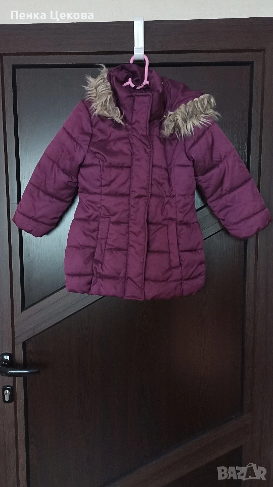 Зимно яке, цвят тъмно лилав. Размер 104. Няма забележки.