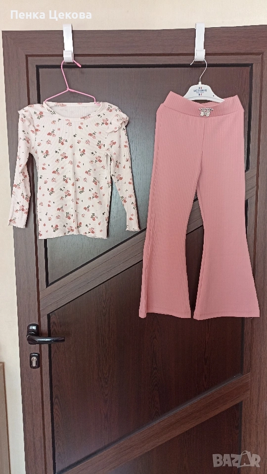 Комплект блузка рипс на цветя и панталон чарлстон. Нямат забележка.
