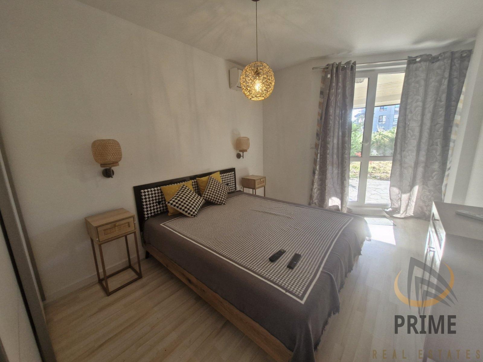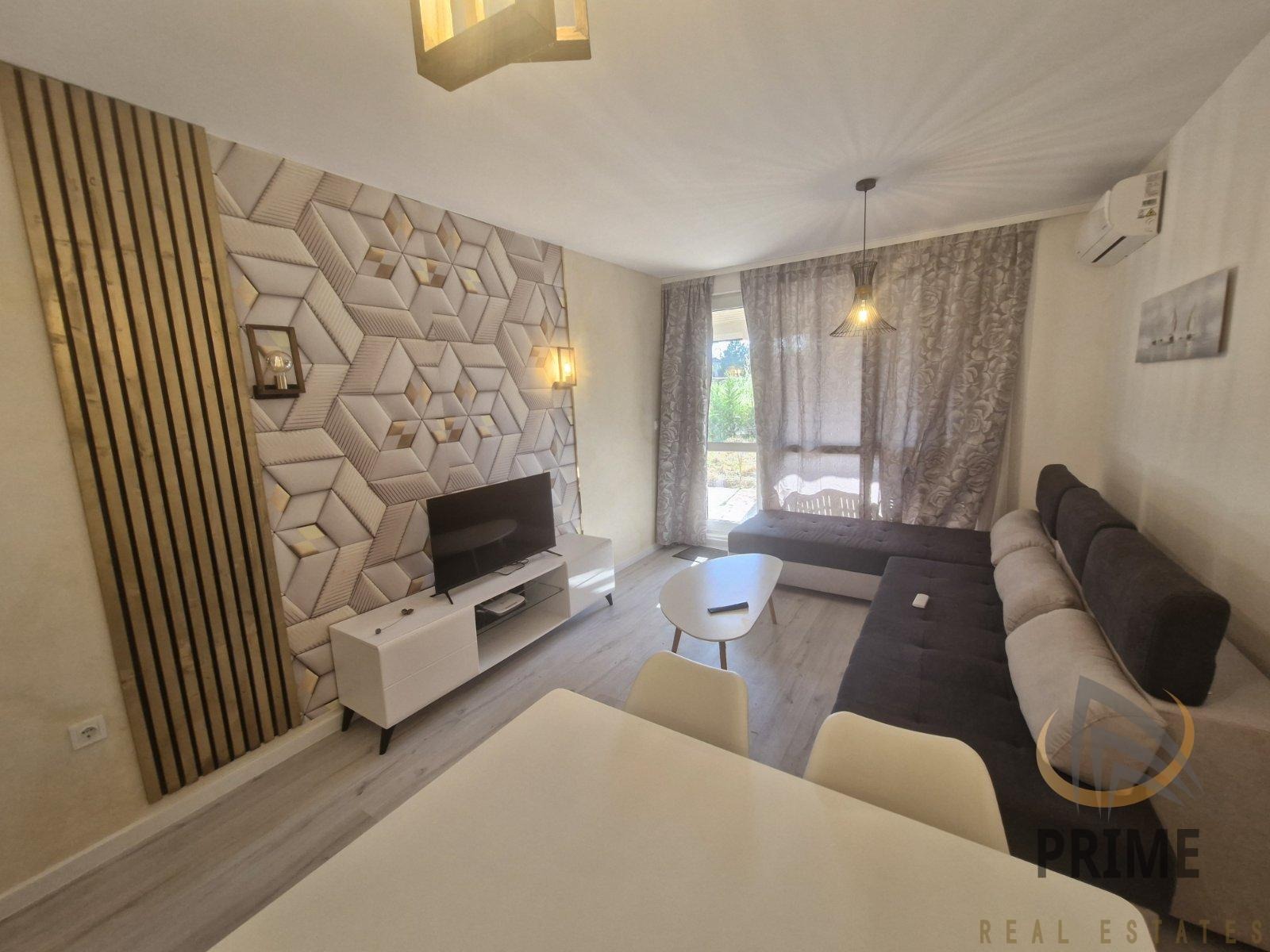 Модерно обзаведен двустаен апартамент с двор под наем, разположен в центъра на кв. Сарафово. В нова сграда в затворен комплекс.