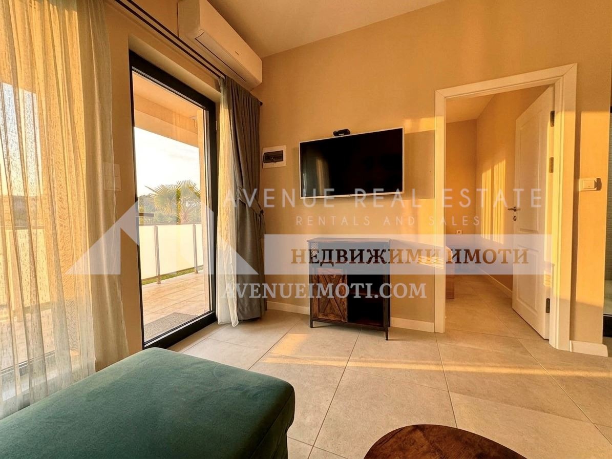 Удобства: Напълно обзаведен и готов за нанасяне. Разположен на първи етаж, с директен достъп до верандата.