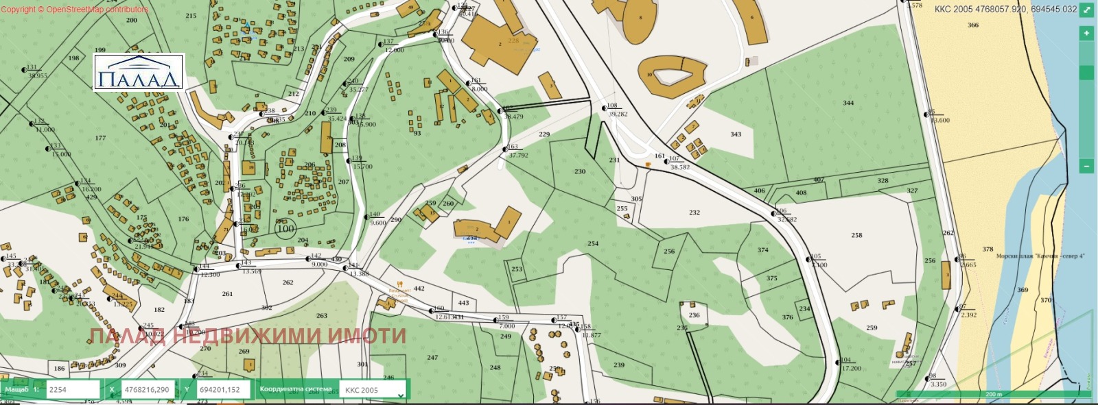 На вниманието Ви предлагаме парцел с ПУП, урбанизирана територия, за строителство на комплекс, хотел, или къщи. Намира се на пешеходно разстояние от морето и река Камчия . В съседство има хотели, къщи за гости, бунгала, къщи с постоянно живеещи семейства. Показателите на строителство са : КИНТ 1, 30%ПЗ, височина 10м./3ет.. За имота има идеен проект за сграда, който при интерес може да се покаже на купувача. Възможно 700м2 ЗП, надземно РЗП 2300м2.