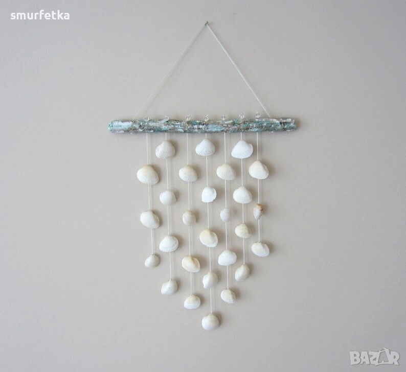Изработено е от морски плавей и мидички.