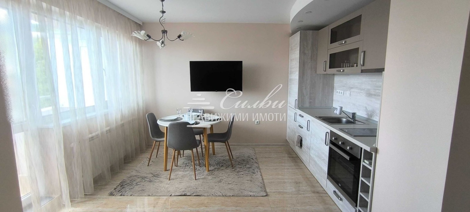 Двустаен ЛУКСОЗЕН апартамент НОВО СТРОИТЕЛСТВО под наем - кв. Добруджански! Жилището е изключително СВЕТЛО и ТОПЛО с площ от 60 кв.м. и следното разпределение: коридор, просторна всекидневна с кухненска част, спалня, баня и тоалет заедно и тераса. Имотът се предлага се напълно ОБЗАВЕДЕН с всички необходими МЕБЕЛИ и ЕЛ.УРЕДИ /готв. печка с ел. котлони, аспиратор, хладилник с фризер, пералня, сушилня, бойлер, ютия, телевизор/. Подобрения: нова PVC дограма, нови ВХОДНА и ИНТЕРИОРНИ врати, подовите настилки са ламиниран паркет и теракота. Отоплението е на ГАЗ и КЛИМАТИК. Към имота принадлежи и ИЗБА. В наемната цена са включени месечни такси за асансьор и за почистване на общите части. Изложение: ЮГ