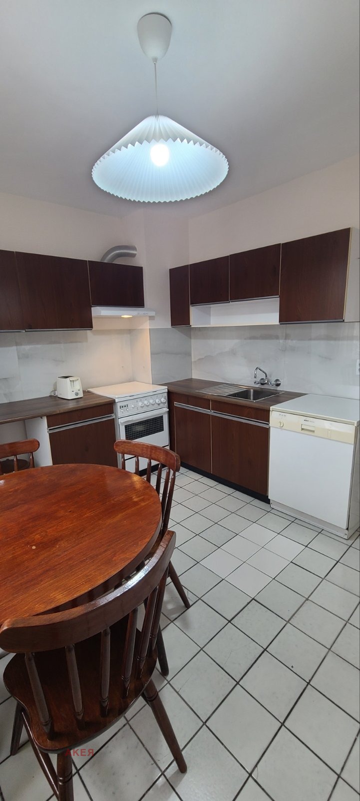 обзаведено и оборудвано с всички необходими уреди за едно домакинство: Чисто нов хладилник, абсорбатор,съдомиялна,печка и автоматична пералня в отлично състояние.