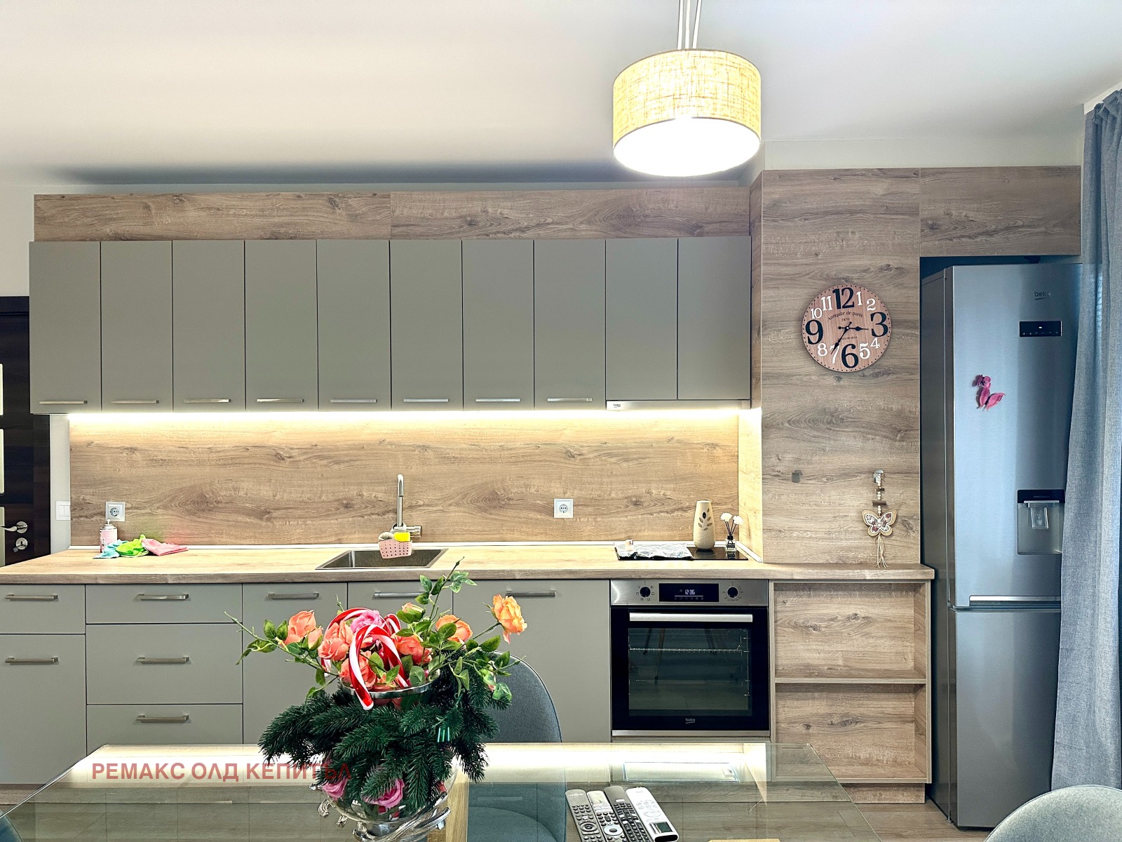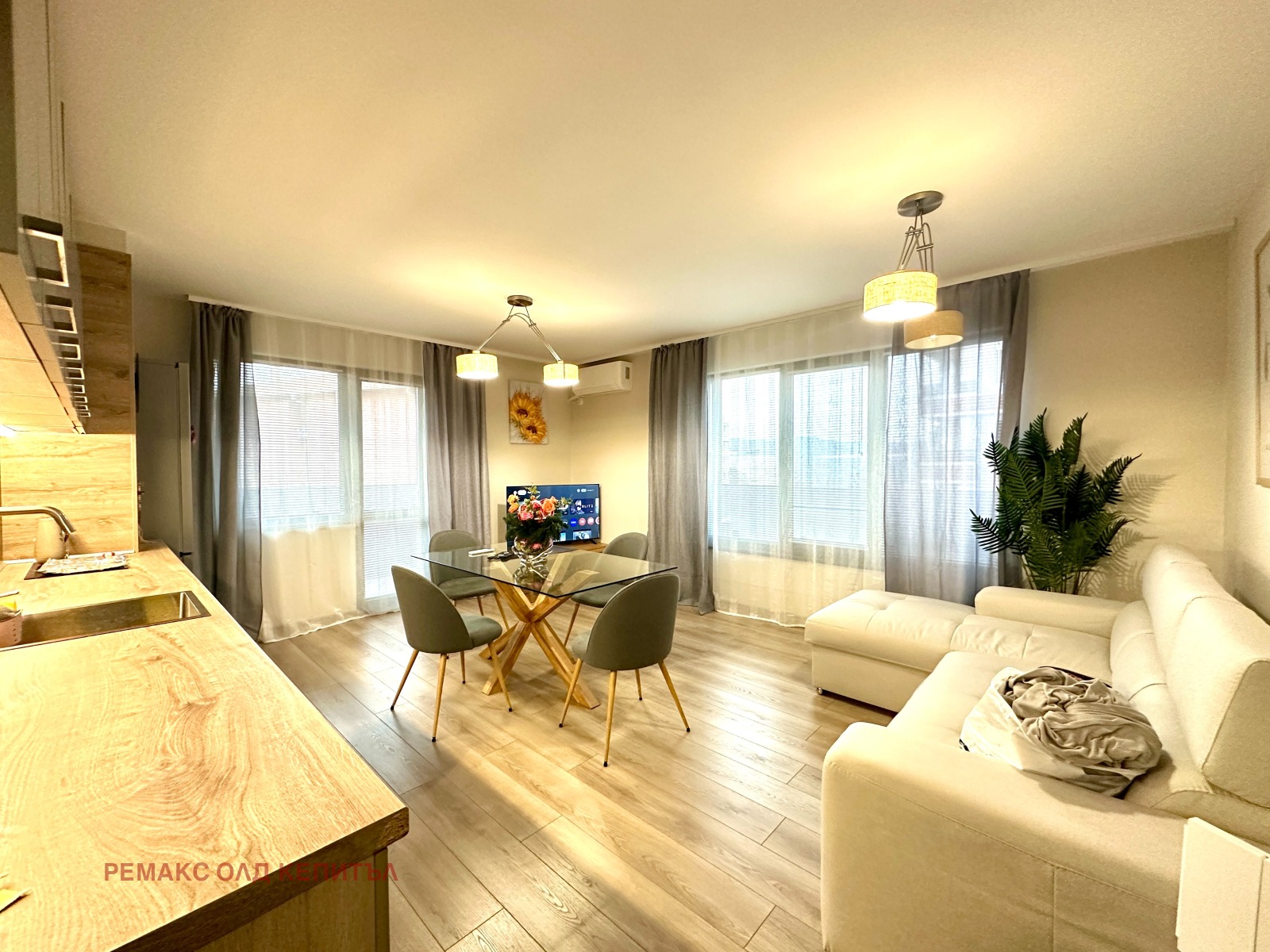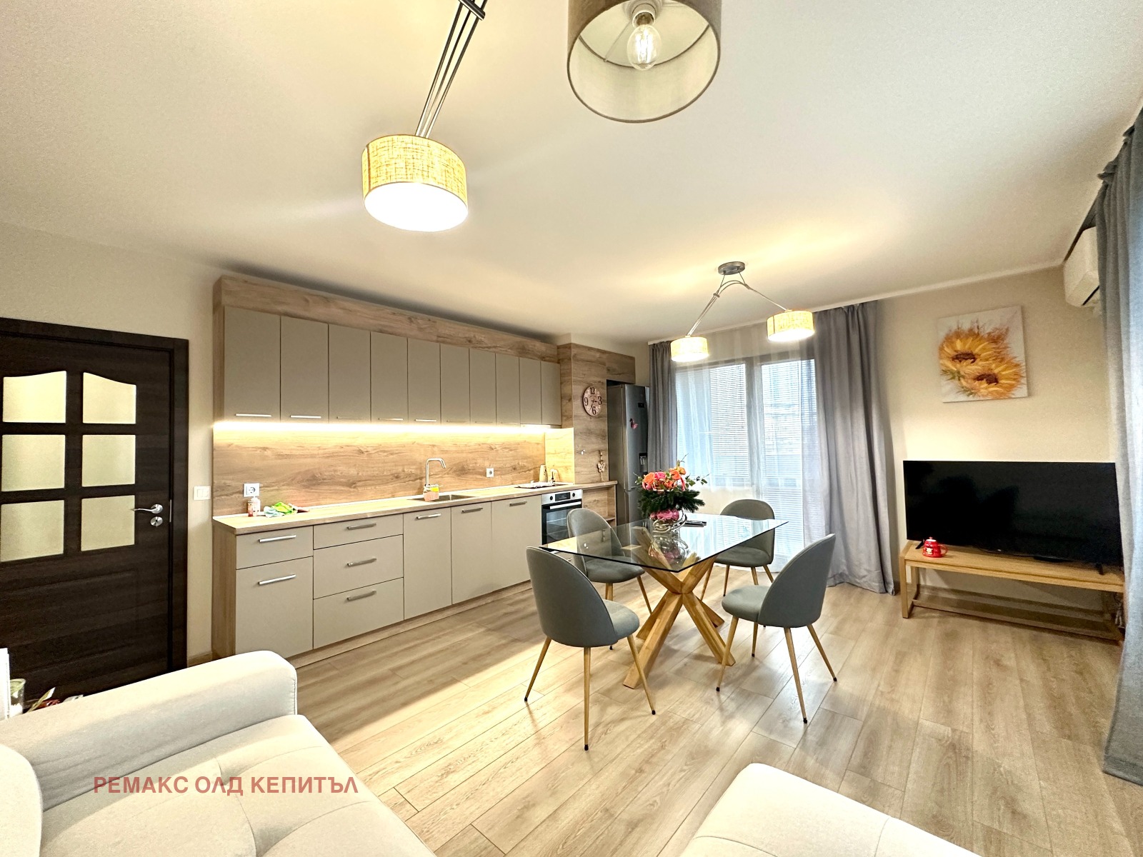 Жилището е стилно обзаведено с качествени мебели и висок клас електроуреди. Апартамента е с площ 85 кв.м разпределени между: входно антре, коридор, всекидневна трапезария с кухненя, две спални, баня с тоалетна, тоалетна мокро помещение/килер и тераса. Втората спалня е обзаведена като детска.