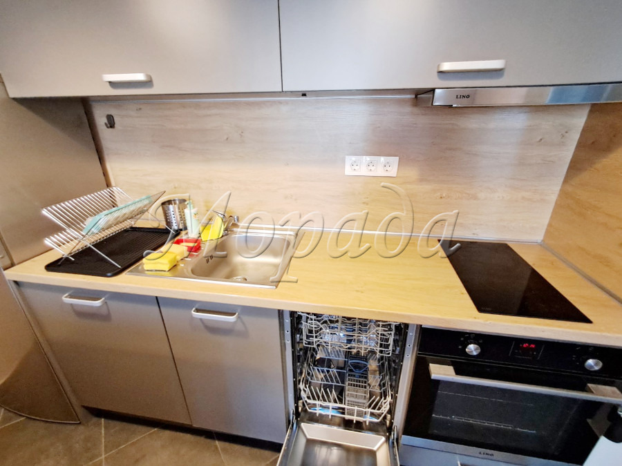 Чисто нов луксозно обзаведен и оборудван апартамент с гледка към Витоша до Бизнес Парк София. Апартаментът се намира на ет. 2, в нова тухлена сграда с отлични общи части и контролиран достъп на външни лица. Състои се от: входно антре, хол с трапезарна част и кухненски бокс, самостоятелна спалня, баня с тоалетна и тераса с излаз и от двете стаи и гледка към Витоша. Апартаментът е ремонтиран и напълно обзаведен и оборудван (включително с вградена бяла техника). За комфорта на обитателите са монтирани конвекторни климатици, които се ползват за отопление през зимата и за охлаждане през лятото. Слънчево западно изложение, има и панорамна гледка към Витоша.