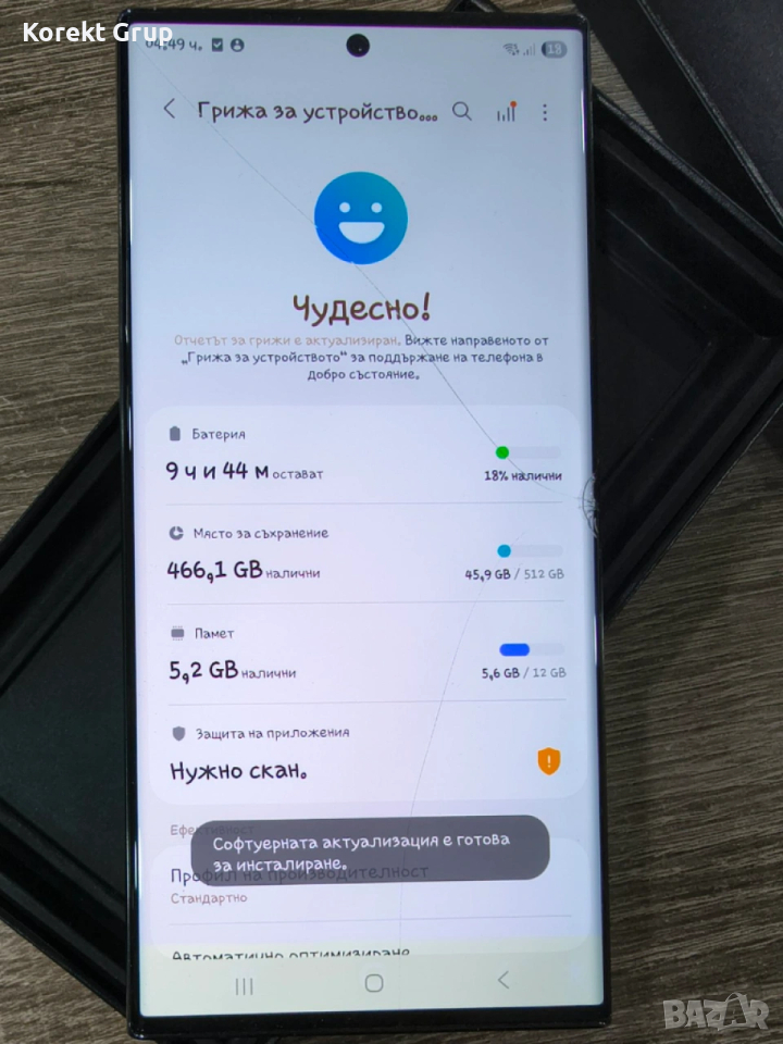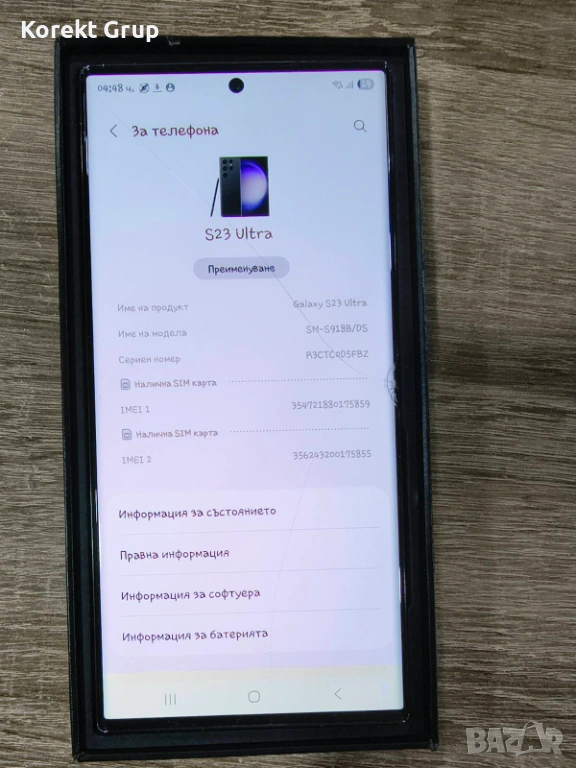 Продавaвам Samsung S23 Ultra 512gb вътрешна памет и 12gb рам памет.Телефонат идва със забележка може да се види на снимките дисплея е пукнат от средата в дясната част и гърбът също но работи и тъча и всички функци на телефона писалката също е в работно състояние без забележки там.Може лек Коментар на Цената,телефонат може да се види на място за гр.Варна или да се изпрати по Еконт с преглед и тест.