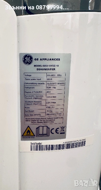 GE GED-12YDZ-19 1.80 л, 12 л/24 ч, 40.00 dB(A). Мощност 200W.