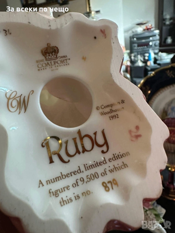 Coalport England 1993 "Ruby" 25 см прекрасна фигура на млада жена, красота и класа, великолепие и очарование! Блестящо качество и визия, много добро състояние ! Истински шедьовър на английското порцеланово изкуство! Лимитирана серия от 9500 бр, тази красота е под номер 879. Невероятна порцеланова приказка.