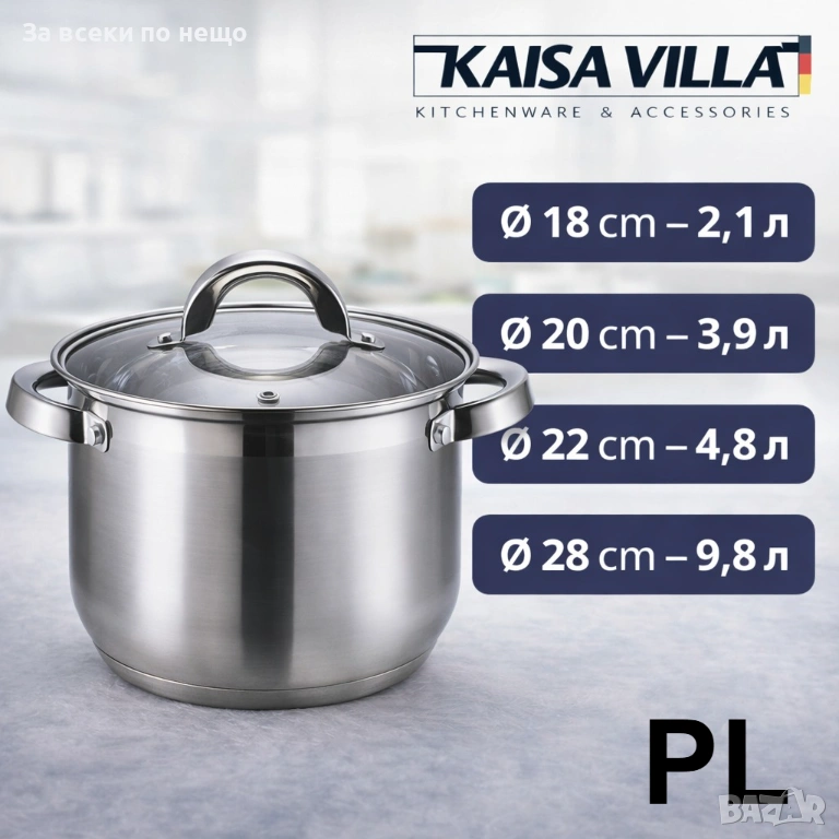 Тенджера KAISA VILLA Inox с капак – предлага се в няколко размера и вместимости Код P2049