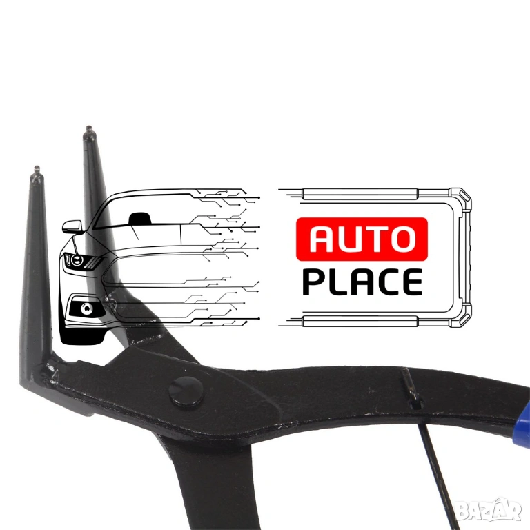 Огънати вътрешни клещи за поставяне и сваляне на закрепващи пръстени зегер от спирачни апарати на VW, Audi, Mercedes и много други.