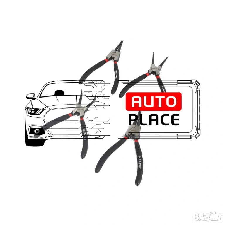 Клещите Mar-Pol се използват за монтаж и демонтаж на закрепващи халки. Има 2 вида защита: вътрешна (разширение вътре в ръкава) и външна (затягане, извън вала). Целият комплект е пригоден за работа с външни и вътрешни пръстени. Имат прави и извити върхове. Клещите са изработени от издръжлива и високоякостна CrV хром-ванадиева стомана, с двуцветни гумени дръжки. Покрит с устойчиво никелово покритие.