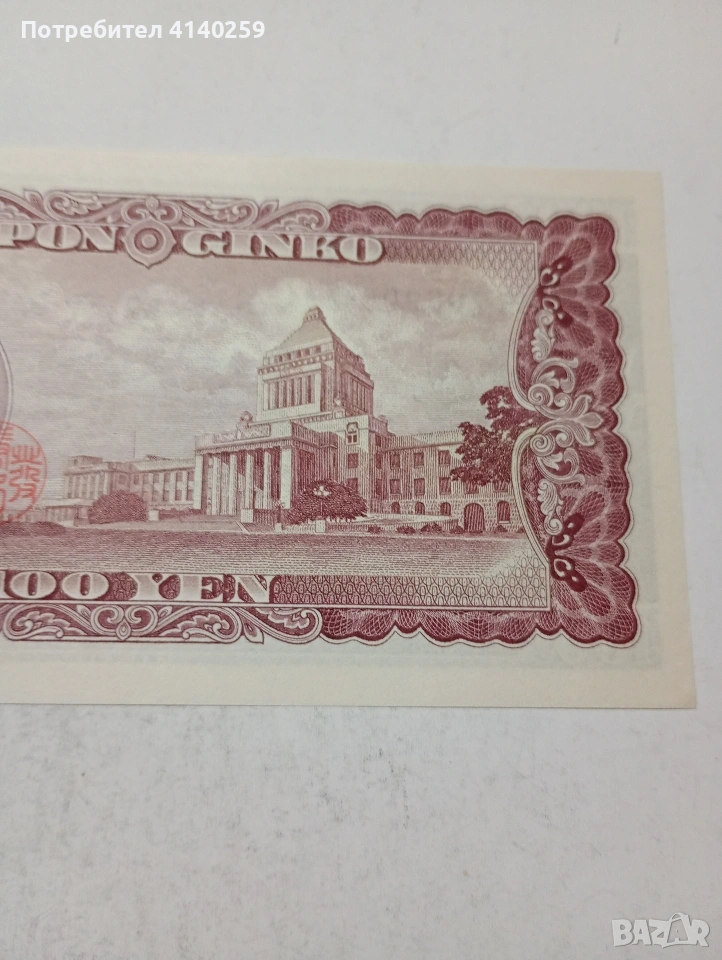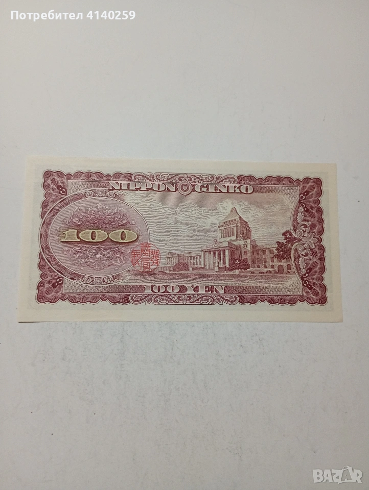 ЯПОНИЯ БАНКНОТА 100 ЙЕНИ 1953 Г СЪСТОЯНИЕ НОВО ПОЛУЧАВАТЕ СНИМАНАТА БАНКНОТА РАЗГЛЕДАЙТЕ ДРУГИТЕ МИ ОБЯВИ ДА КОМБИНИРАТЕ ДОСТАВКА ЕКОНТ ЗА ВАРНА ЛИЧНО