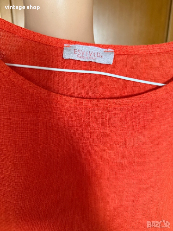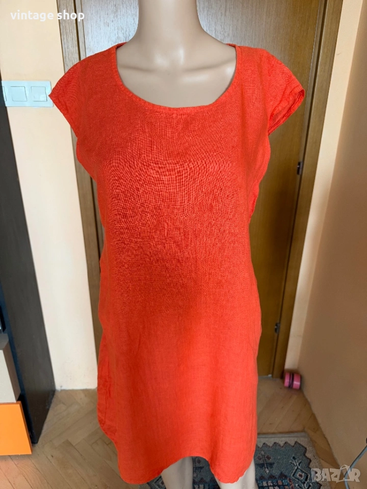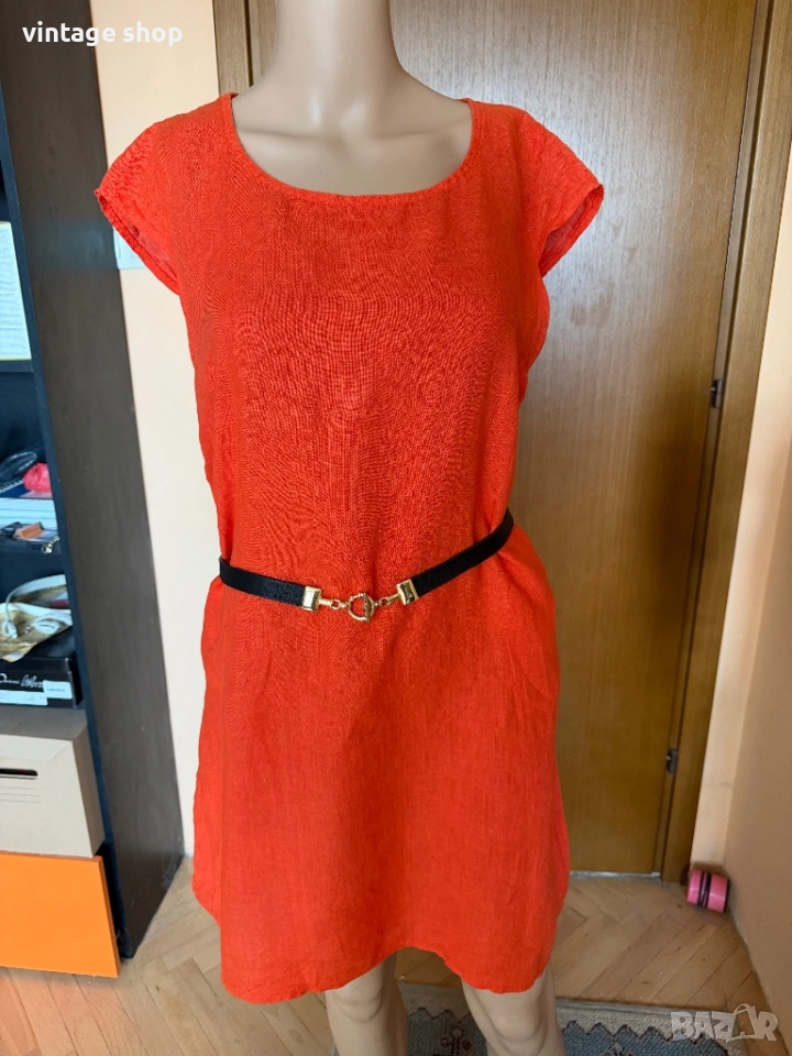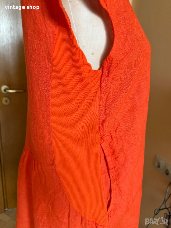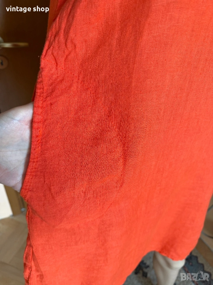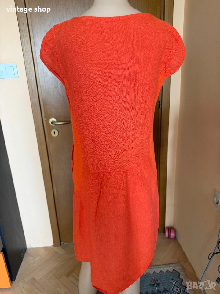 Ленена рокля Esvivid в наситен оранжев цвят, размер М/ малко L