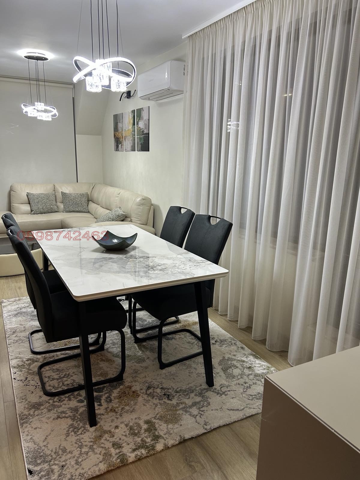 Жилището е чисто ново, в нова кооперация ( на 3-4 години), която се намира на ул. Родопи 28. Разположението е изток-юг и има страхотна гледка към Родопите. Намира се на една минута от Торо гранде, три минути от ТЦ Гранд и на около 6-7 от Пощата и хотел Тримонциум. Много светъл, просторен и топъл апартамент. Отоплението е с два чисто нови климатика Мицубиши Heavy Duty Premium - супер ефективни, мощни, но при все това и много икономични! Обзавеждането е с висококачествени мебели - италиански кожен диван на фирма Тутси с релакс зона! Кухнята е изпълнена с MDF плоскости на EGGER и има вградени съдомиална и пералня със сушилня! Електроуредите са на фирма GORENJE, a телевизора е на Филипс, 55 The one! Осветлението е изцяло LED. Монтирани много висок клас щори, които пропускат светлината, а отвън не се вижда в жилището.
