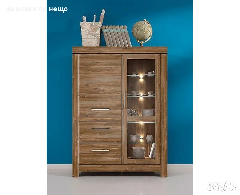 Комплектът включва: витрина REG1W2S/20/7, ТВ шкаф RTV2S/6/14, полица P/3/14 и витрина REG1W1D2S/16/12