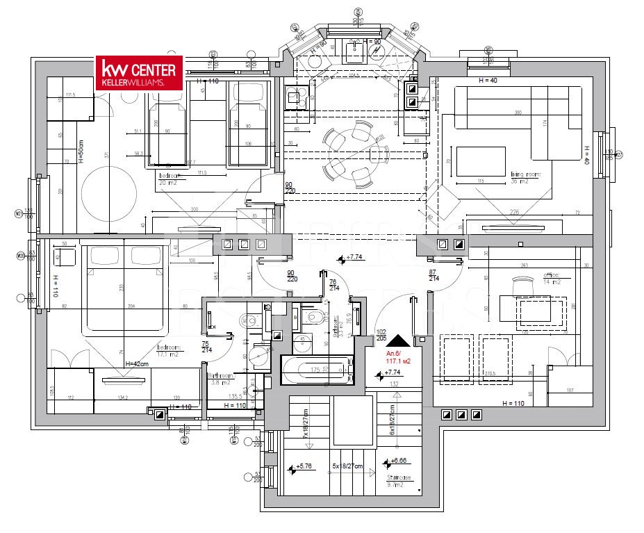 апартамент 6 с обща площ 133.97 м2 състоящ се от три спални, три бани с тоалетни, хол с трапезария и кухня