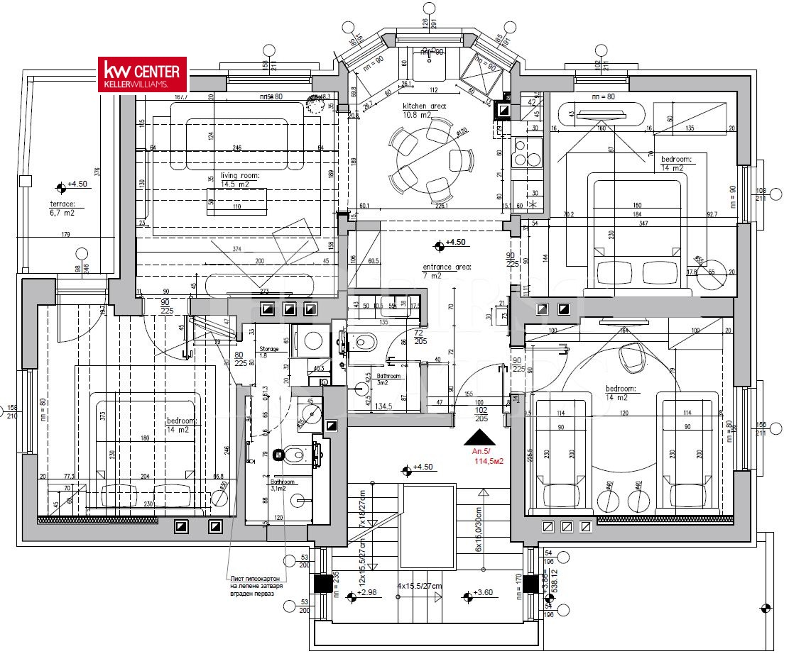 апартамент 5 с обща площ 130.99 м2 състоящ се от три спални, три бани с тоалетни, хол с трапезария и кухня