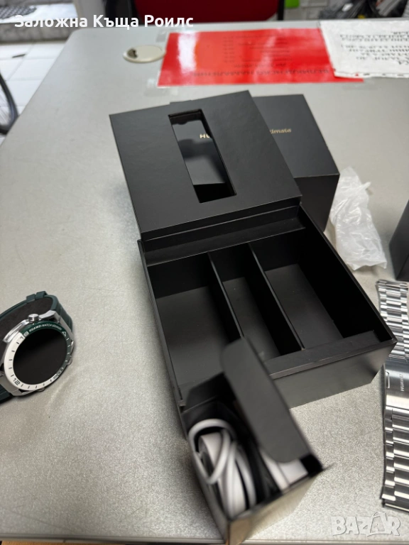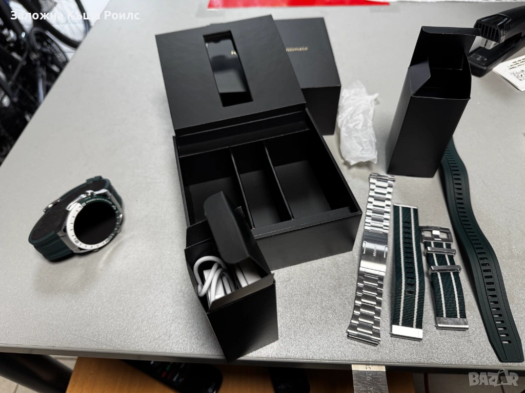 Часовника е неразличим от нов , към него има и 3 каишки зарядно и кутия .