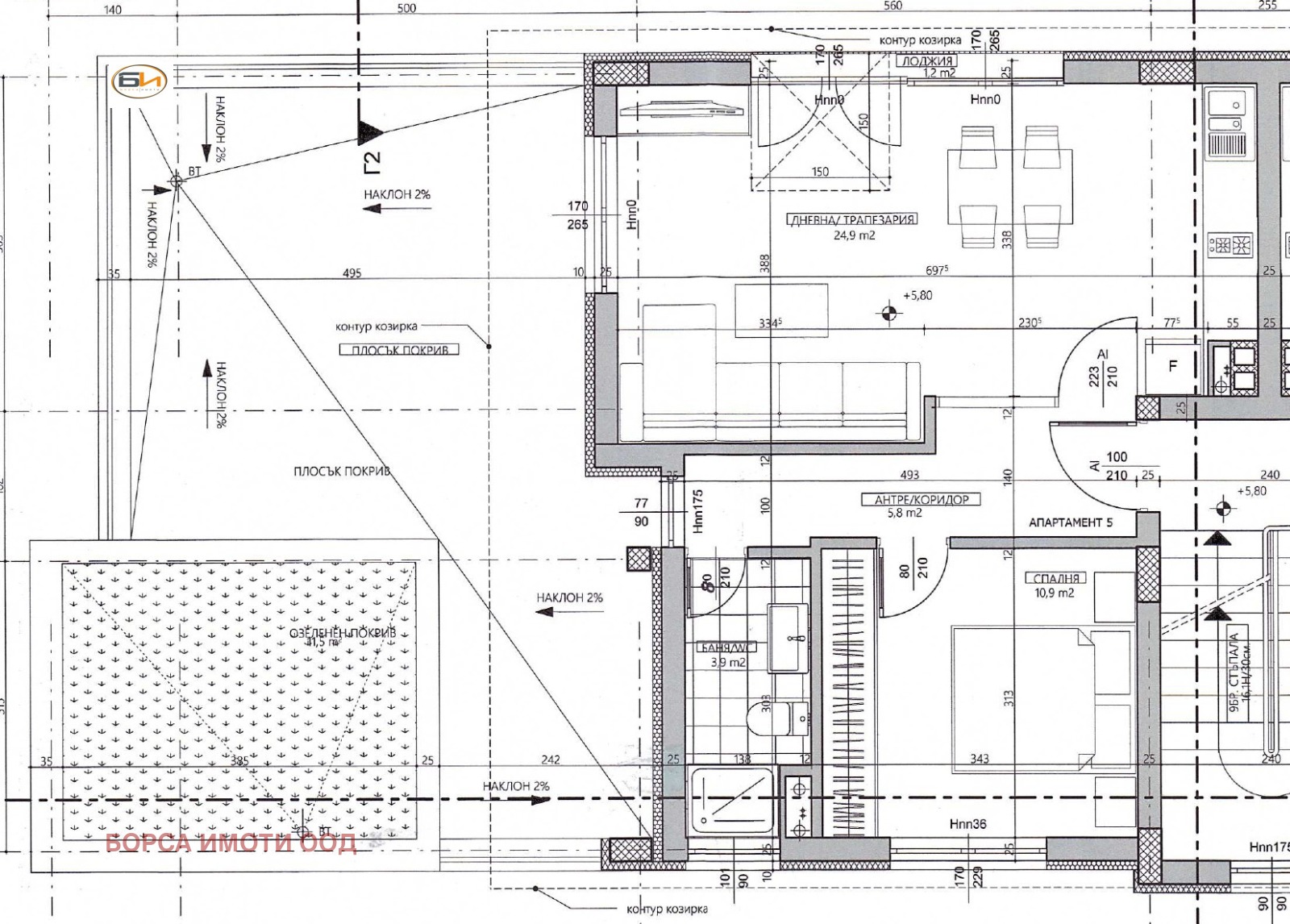 ДВУСТАЕН с НАДЗЕМНО ВЪНШНО ПАРКОМЯСТО - Централна част, сградата е в начален етап на строителство, разрешение за строеж от м.10.2025 г., изградена фундаментна плоча, очакван груб строеж до края на м.09.2026 г. и въвеждане в експлоатация на сградата до края на м.11.2027 г., ап., който се продава е със ЗП - 52 кв.м., състои се от дневна/трапезария и кухненска част - общо помещение, спалня, баня с WC - общо помещение, покривна тераса, шпакловка и замазка, инсталации на тапи, предвидено отопление и охлаждане - климатици, възможност за захранване с газ, входна блиндирана врата, PVC дограма - 6 камерна, цвят - дъб, напълно завършени общи части - по проект, складово помещение - 15.00 кв.м., надземно външно паркомясто - 13.75 кв.м., ид.части от общи части и от поз.имот, цената се плаща на 4-ри вноски: Аванс - 40 % при подписване на предварителен договор, Груб строеж /Акт 14/ - 30 %, Акт 15 - 20 % и Въвеждане в експлоатация /Акт 16/ - 10 % или индивидуална схема на плащане, тих район, до парк, детска градина и в близост до хипермаркет, оферта 5904