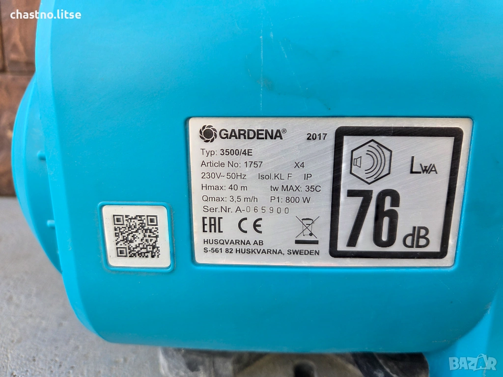 Градинска помпа Gardena 3500/4e (Арт. 1757) – за части / ремонт, снимка 1 - Напояване - 53956095 Градинска помпа Gardena 3500/4e (Арт. 1757) – за части / ремонт, снимка 2 - Напояване - 53956095 Градинска помпа Gardena 3500/4e (Арт. 1757) – за части / ремонт, снимка 3 - Напояване - 53956095 Градинска помпа Gardena 3500/4e (Арт. 1757) – за части / ремонт, снимка 4 - Напояване - 53956095 Градинска помпа Gardena 3500/4e (Арт. 1757) – за части / ремонт, снимка 5 - Напояване - 53956095 Градинска помпа Gardena 3500/4e (Арт. 1757) – за части / ремонт, снимка 6 - Напояване - 53956095 Градинска помпа Gardena 3500/4e (Арт. 1757) – за части / ремонт, снимка 7 - Напояване - 53956095 1/7