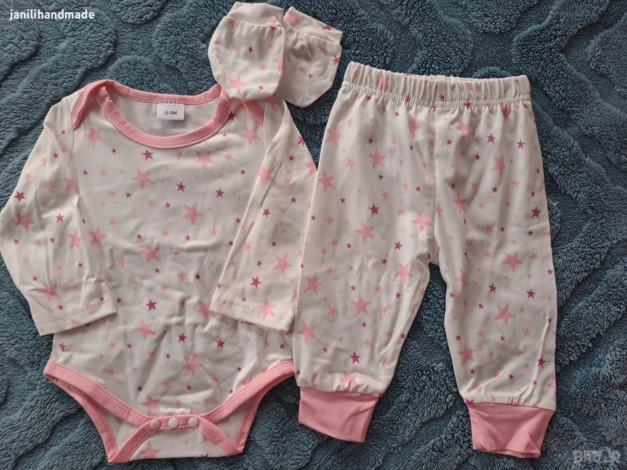 Нови комплекти за бебе Размер 0-3 месеца Материя полиестер Цена за брой комплект 4 евро