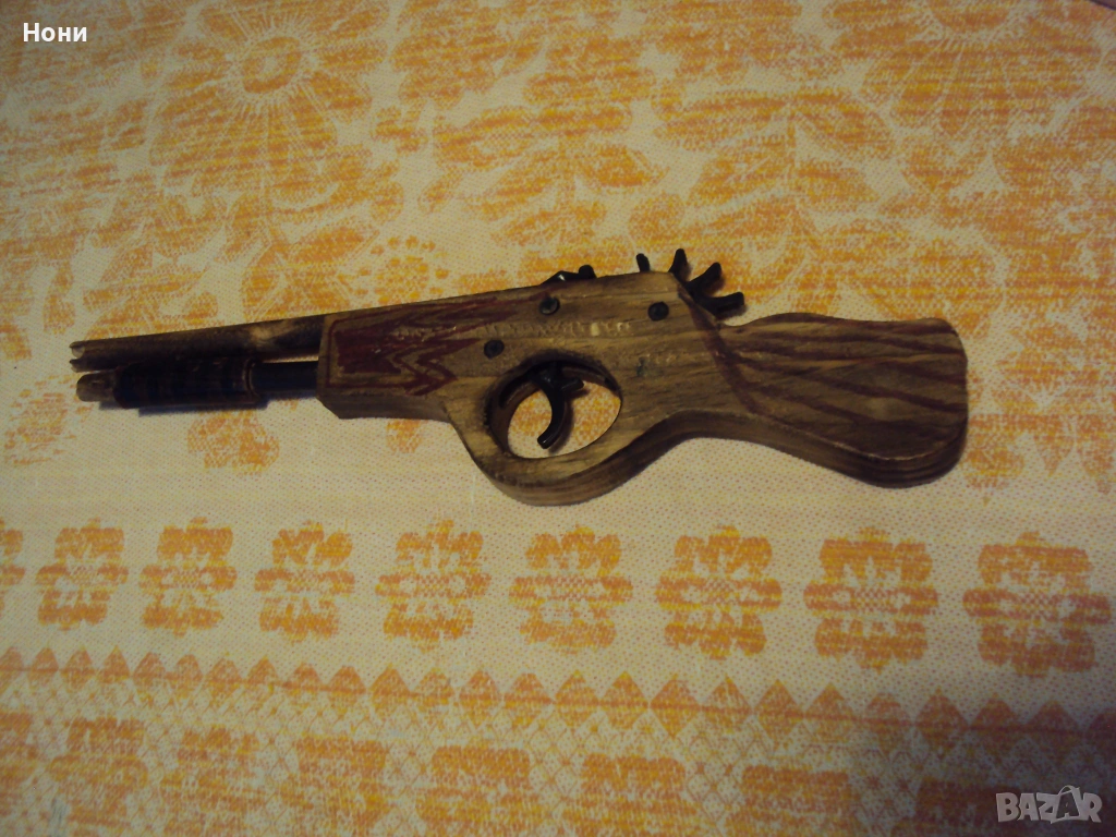 Дървен детски пистолет 32 см дължина състояние отлично! Ръчно правен!