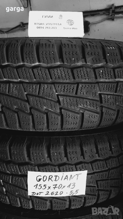 марка - GORDIANT 155X70R13 DOT 2620 грайфер 5.5 мм. 2 броя цена/брой 20 евро.