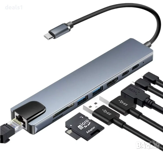 Позволява зареждане на лаптоп или таблет, докато използвате хъба.