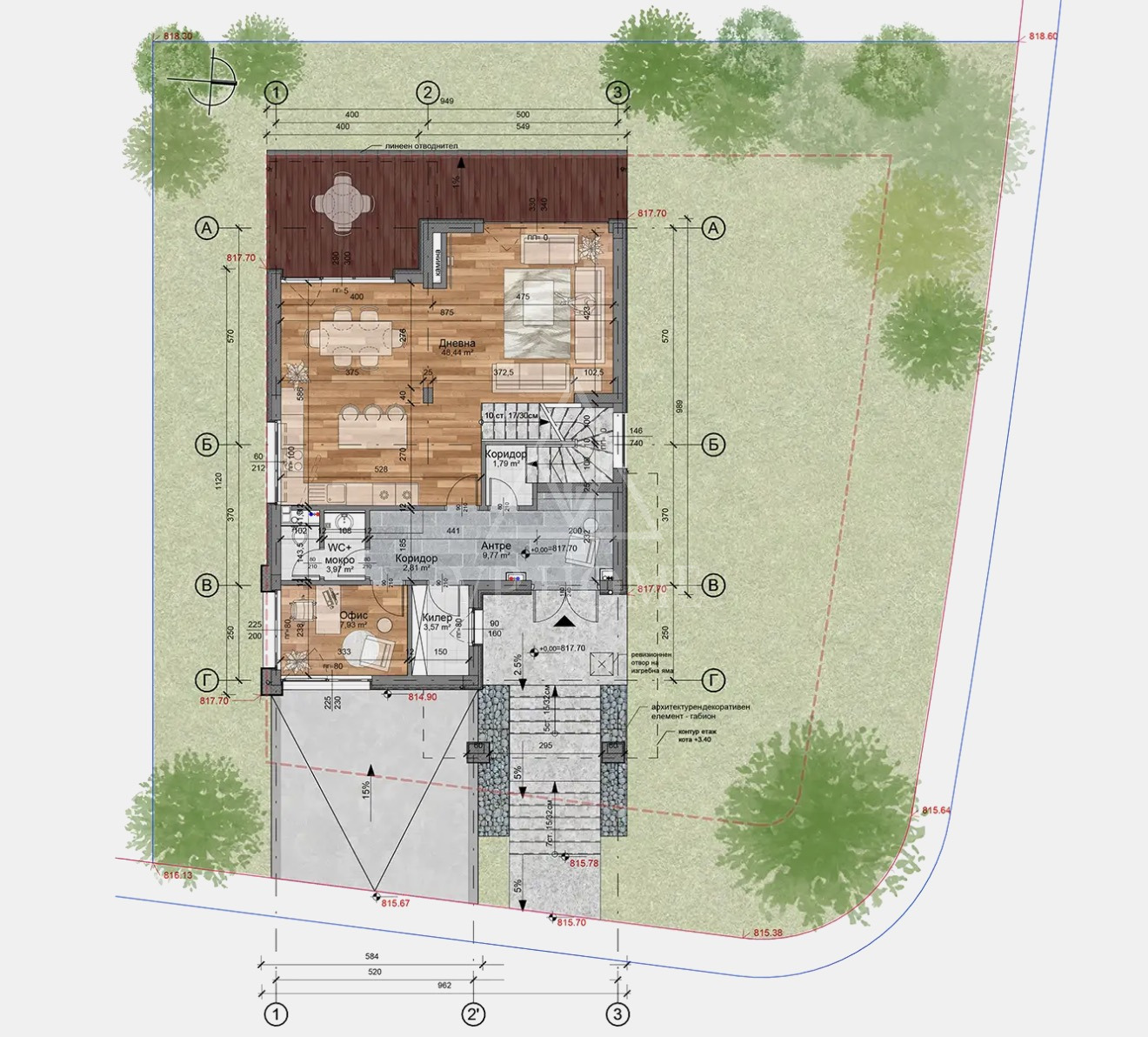 С РЗП от 441 кв.м. и собствен озеленен двор от 500 кв.м., този дом предоставя простор, уединение и усещане за свобода сред природата.