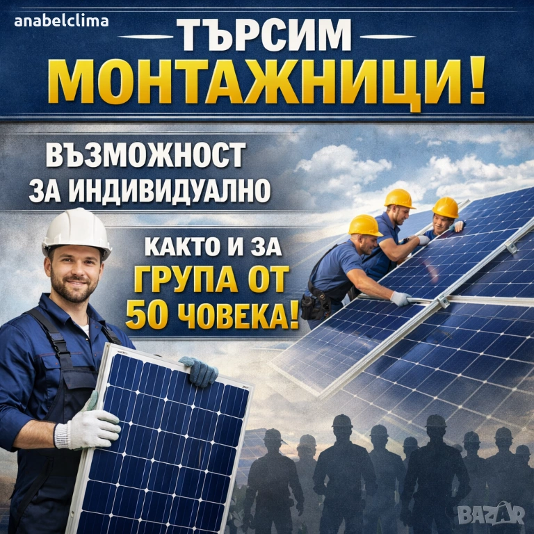 Панос Солар Сървиз ЕООД разширява дейността си и търси да назначи монтажници за изграждане на фотоволтаични централи.