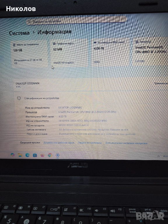 Лаптоп ASUS X54 RAM 4GB DDR3 128 SSD Intel B960 → Обява 53957477