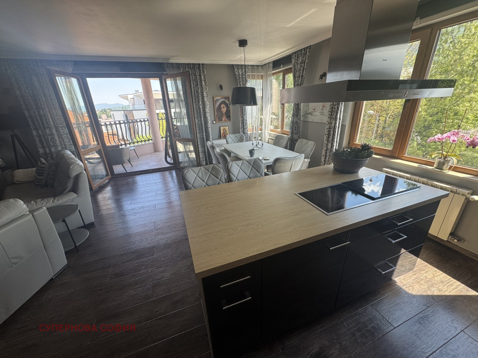 Агенцията има удоволствието да Ви представи просторен, напълно обзаведен тристаен апартамент с площ от 147 кв.м, разположен в една от най- зелените и спокойни части на София живописната местност Гърдова глава, кв. Бояна.