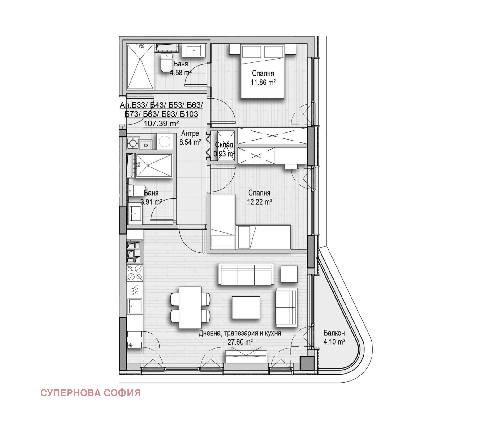 ✅ Двустаен апартамент - 107 кв.м.