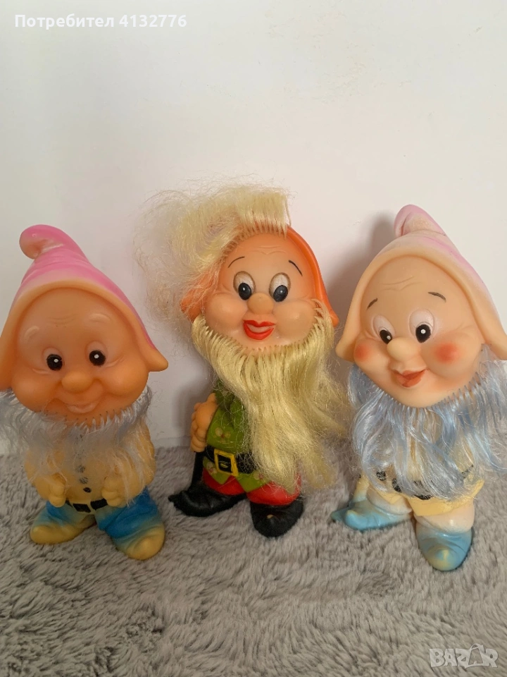Продавам комплект от 3 ретро гумени играчки джуджета → Обява 53957707