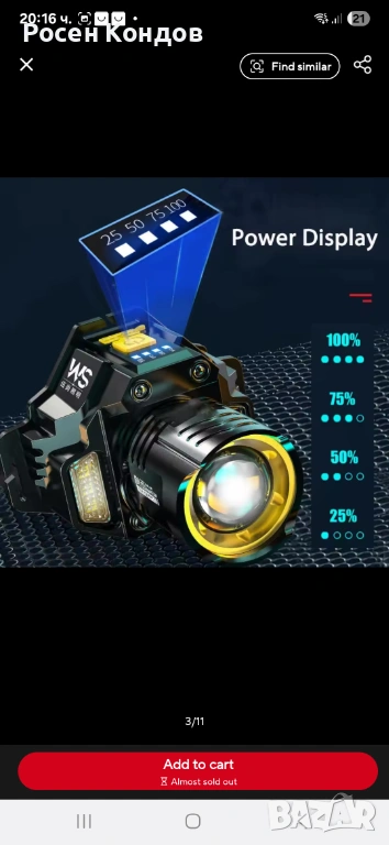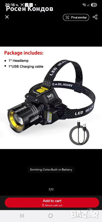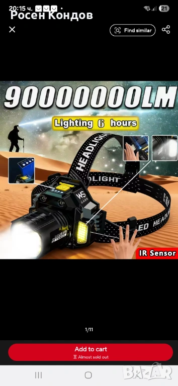 LED МОЩЕН ЧЕЛНИК акумулаторен → Обява 53957830