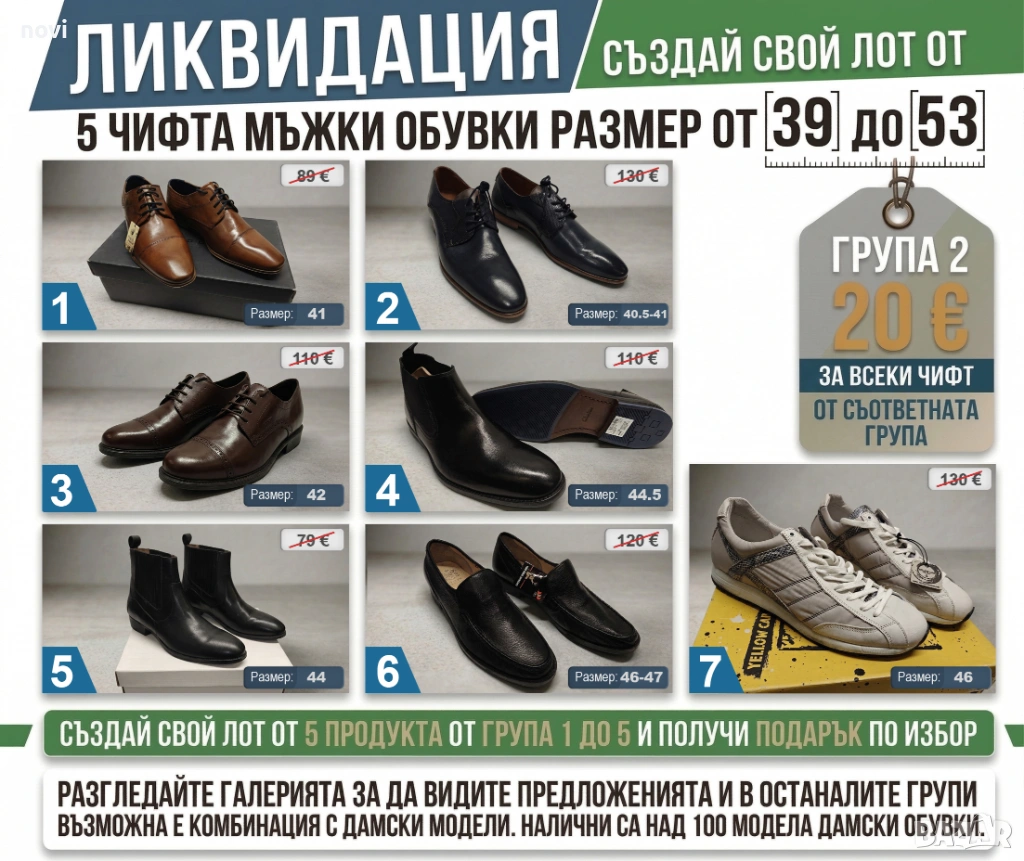 Разпродажба на последни бройки мъжки обувки поради прекратяване на дейността