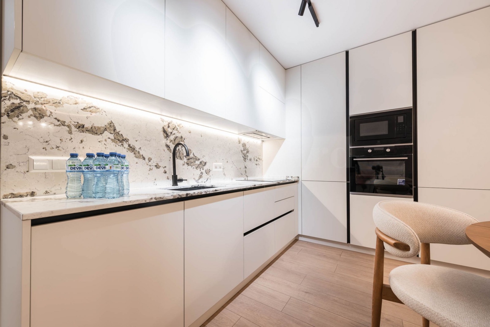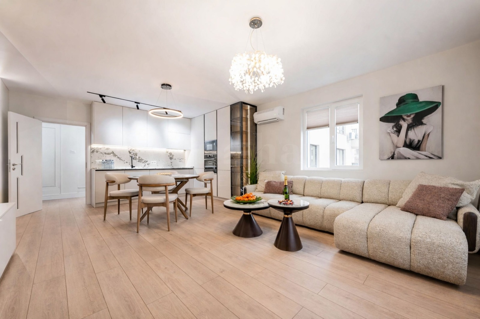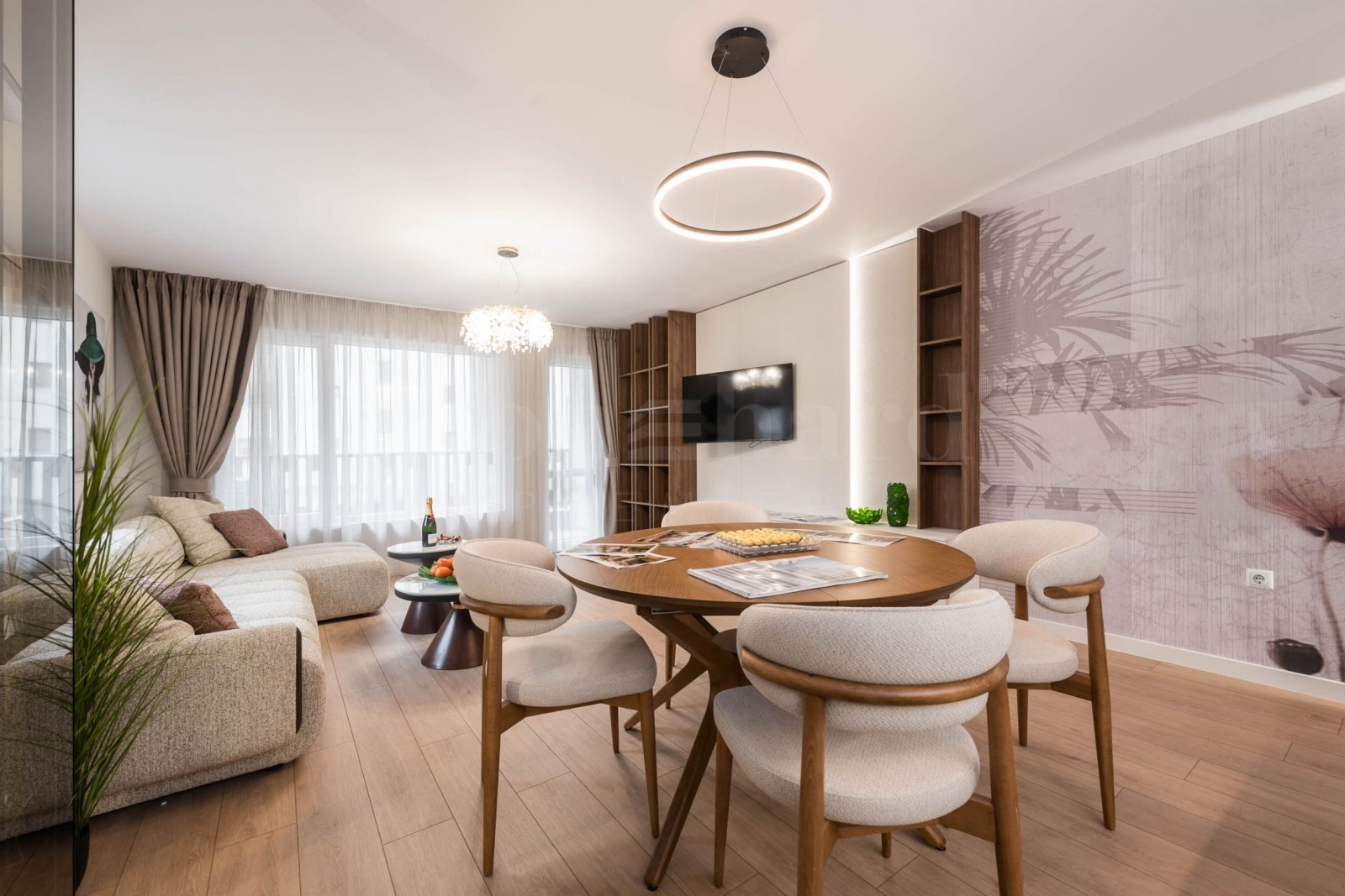 Апартаментът е първокласно завършен, с подово отопление и е готов за нанасяне. Всеки детайл в имота е подбран с вкус, изработен от висок клас материали и изпипан с внимание към усещането за дом. Жилището впечатлява с изискана атмосфера, постигната чрез палитра от светли, натурални тонове, които създават усещане за лукс, отличителен характер и съвършен баланс между комфорт и стил.